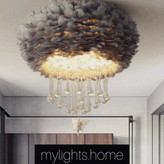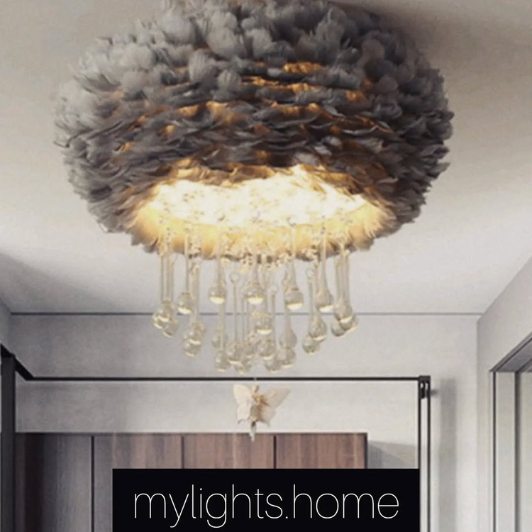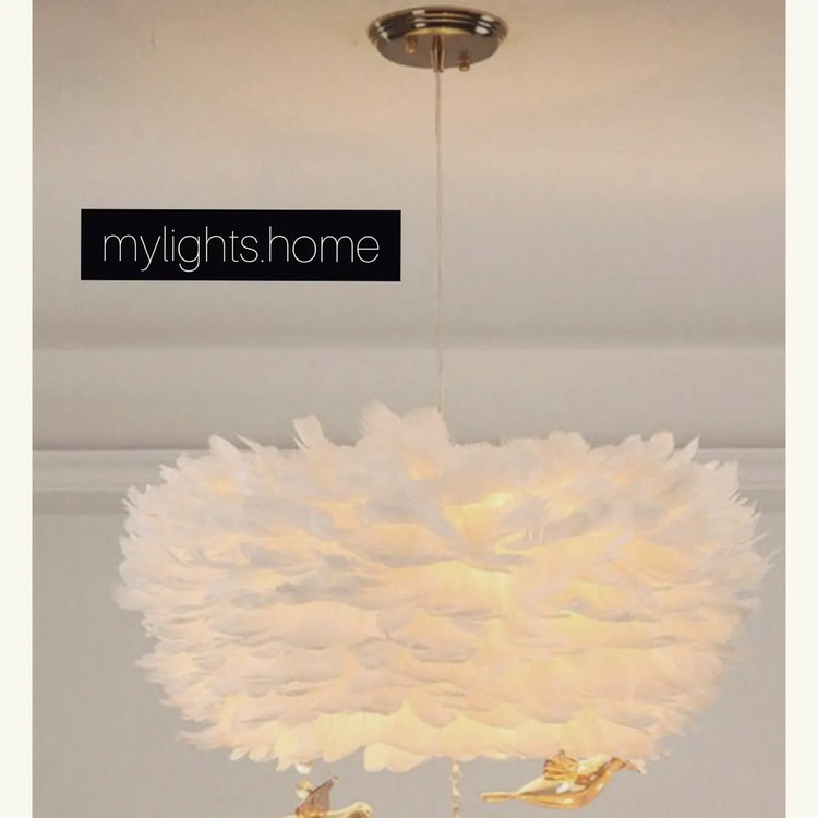 لوستر بسیار زیبا و شیک مناسب برای تمام فضاها. دارای رنگبندی پر سفید، کرم، صورتی و طوسی. پرها بدون نیاز به شستشو و هیچجوره ریزش ندارند. قابل اجرا با کریستال و بدون کریستال.