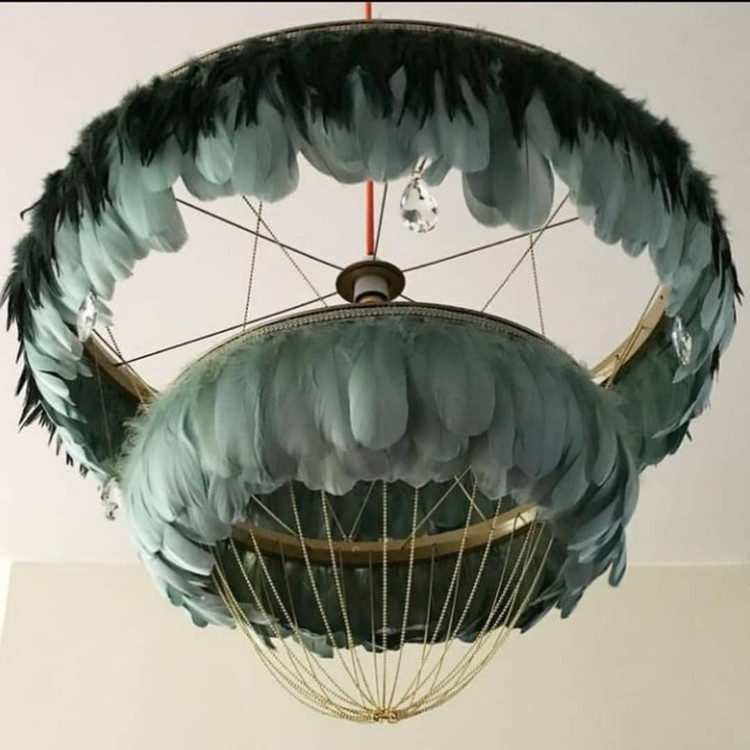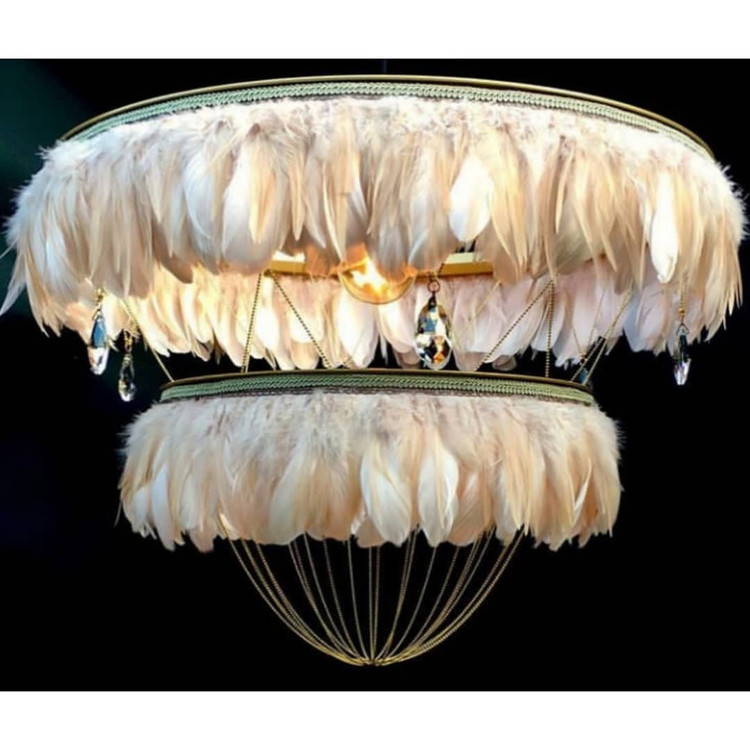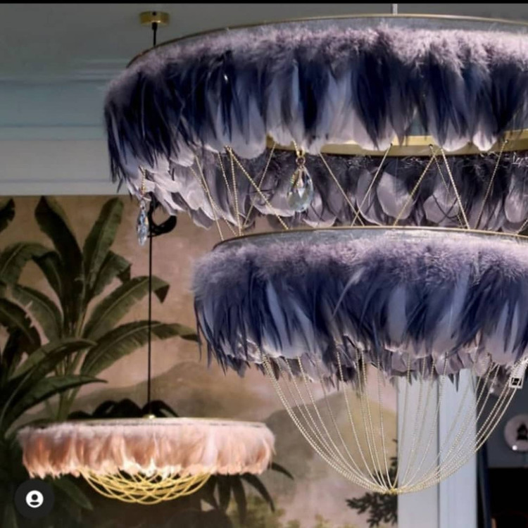 لوستر پر دو طبقه شیک و جذاب با قطر ۴۰ و ۲۰ سانتیمتر و رنگبندی پرپرها. بدون نیاز به شستشو.