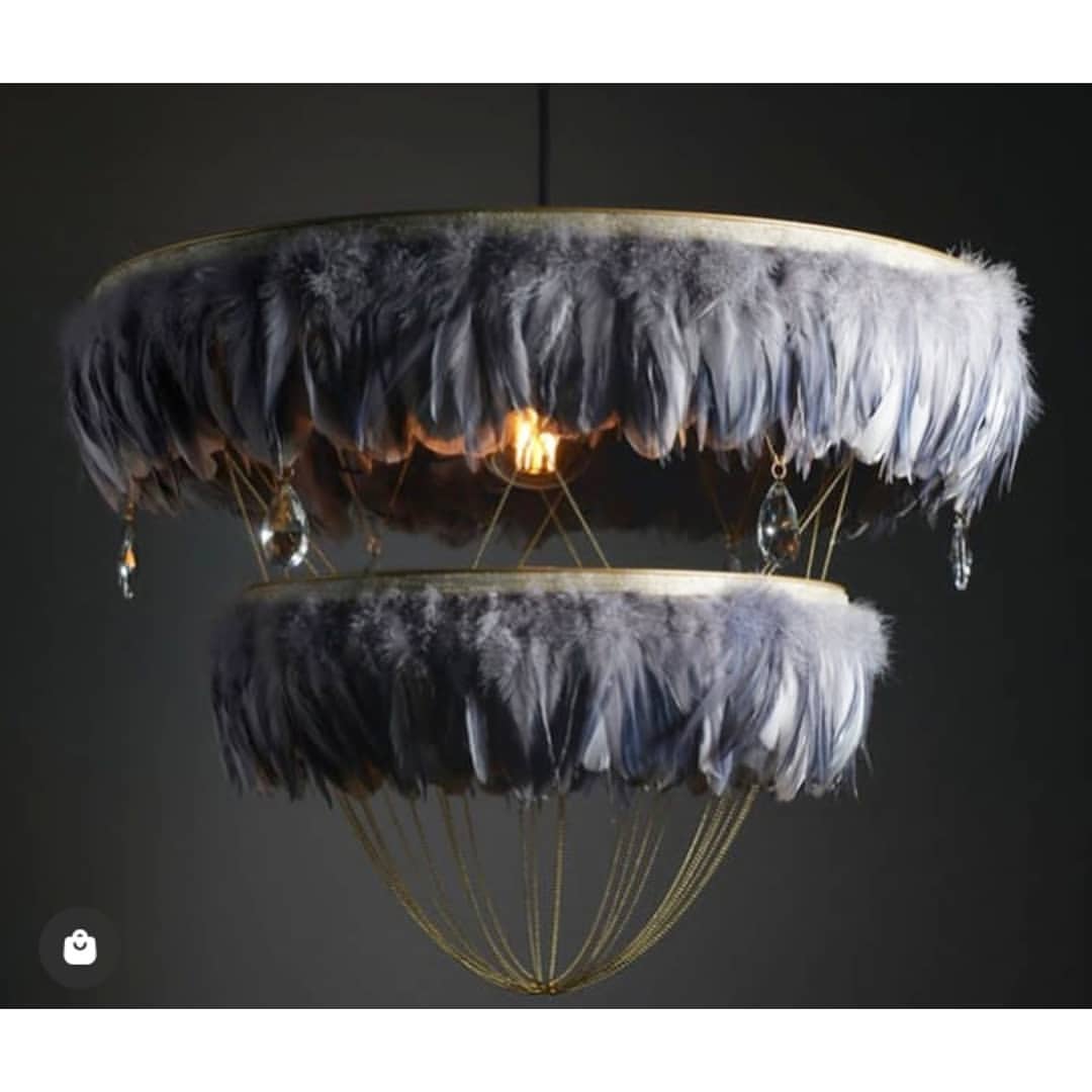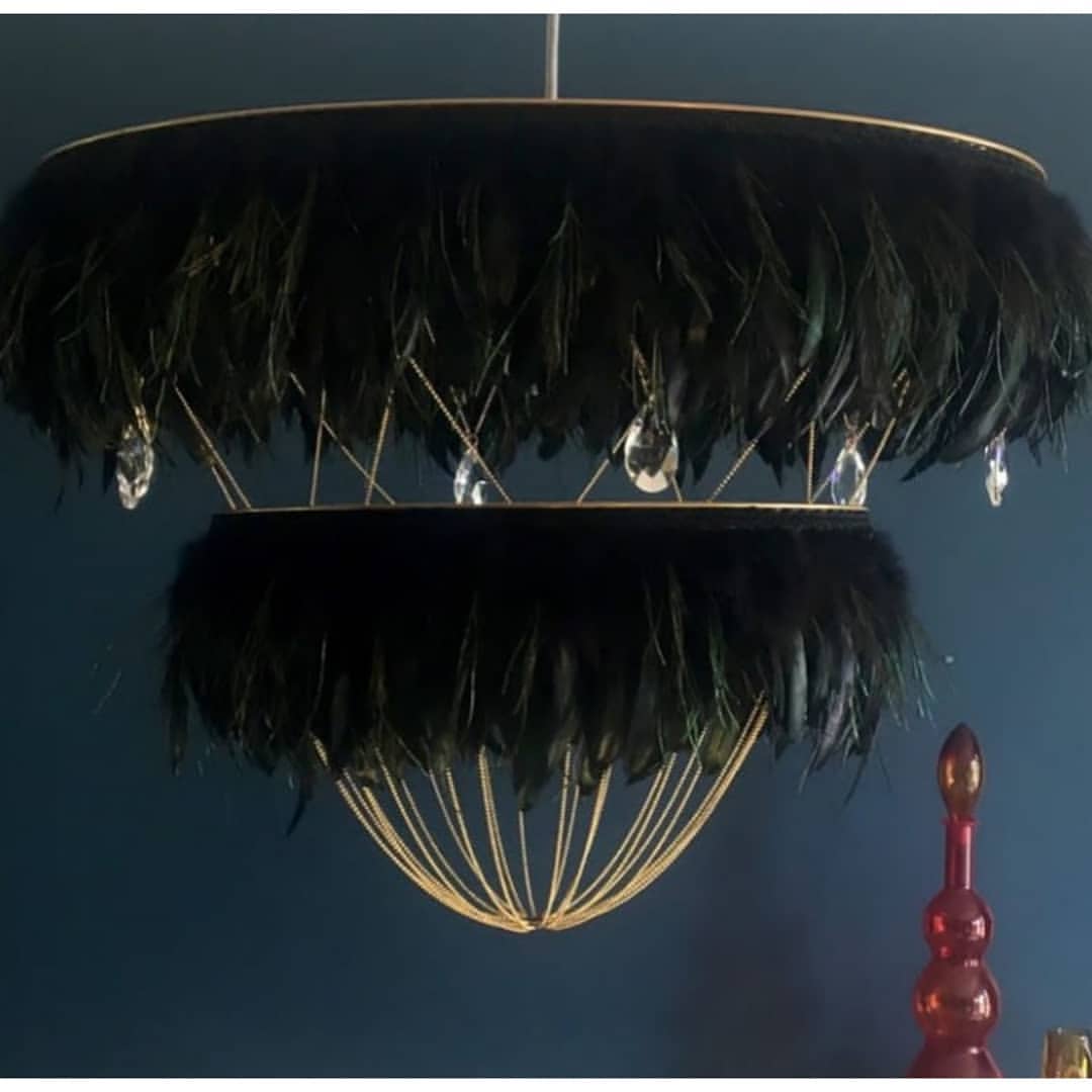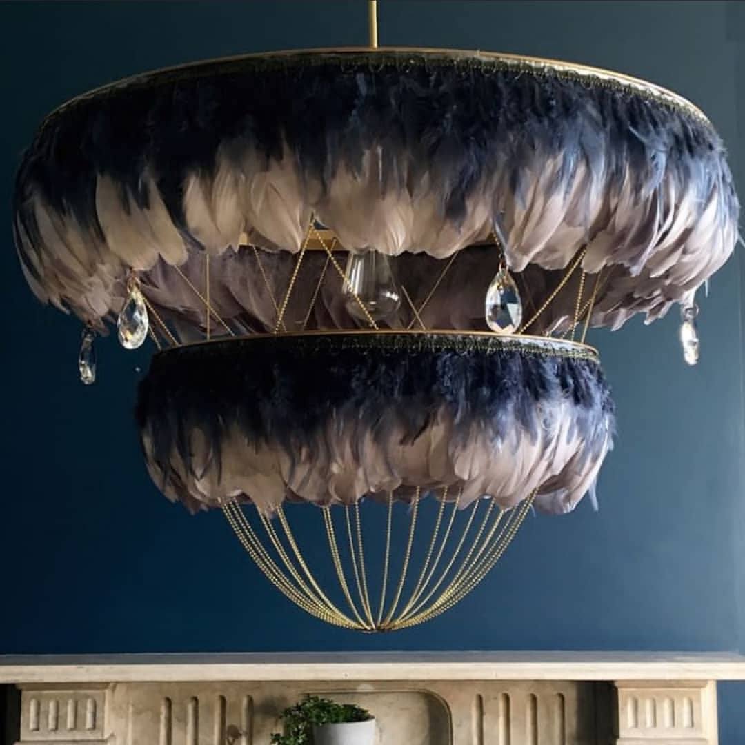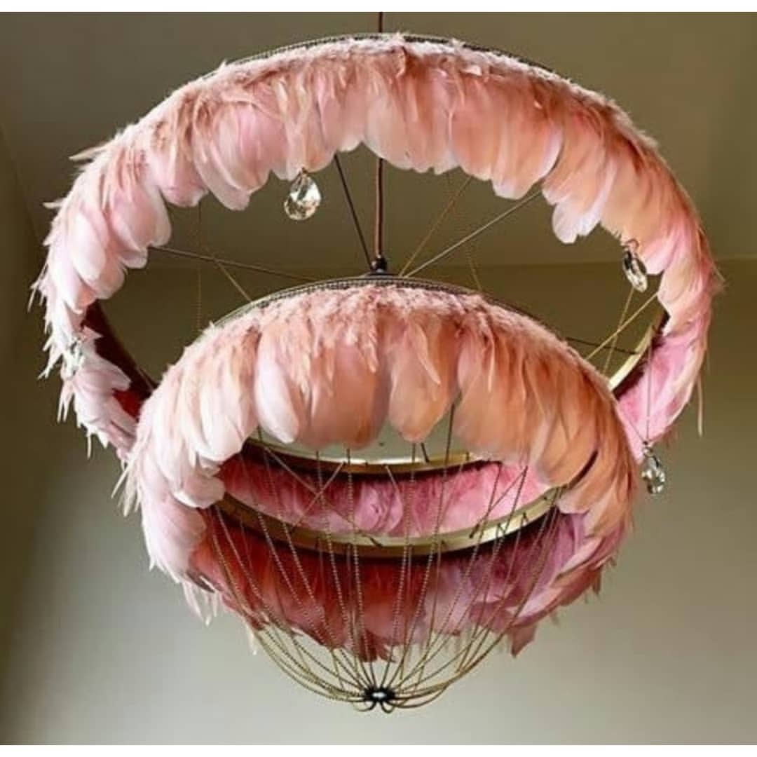 لوستر پر دو طبقه شیک و جذاب با قطر ۴۰ و ۲۰ سانتیمتر و رنگبندی پرپرها. بدون نیاز به شستشو.